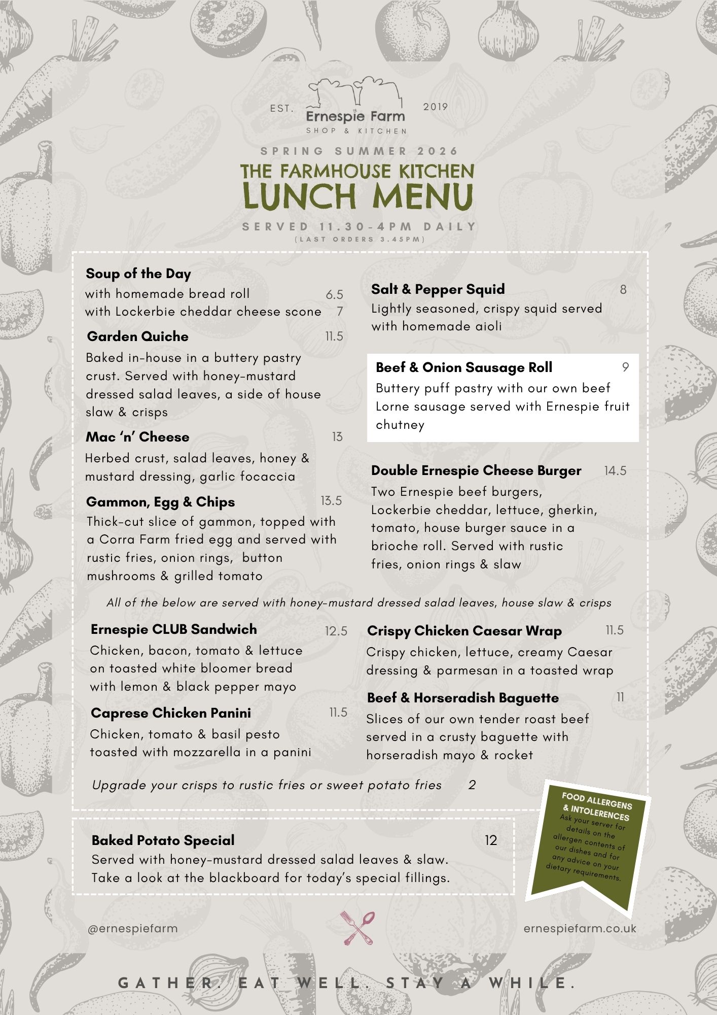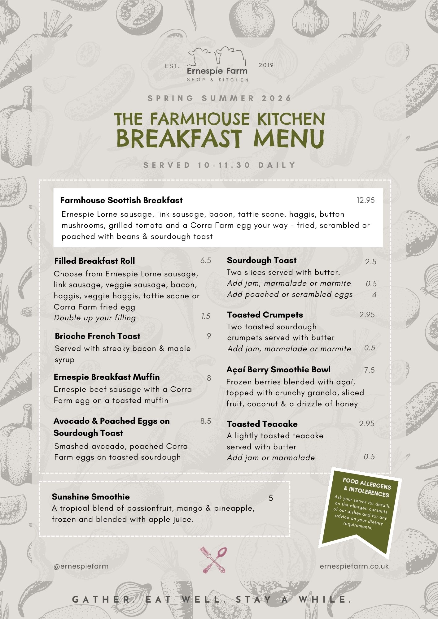 At Ernespie Farm, we warmly welcome both walk-in guests and planned gatherings. While reservations aren’t necessary for smaller parties, we gladly accept bookings for groups of 8 or more, as well as for guests with special requirements.